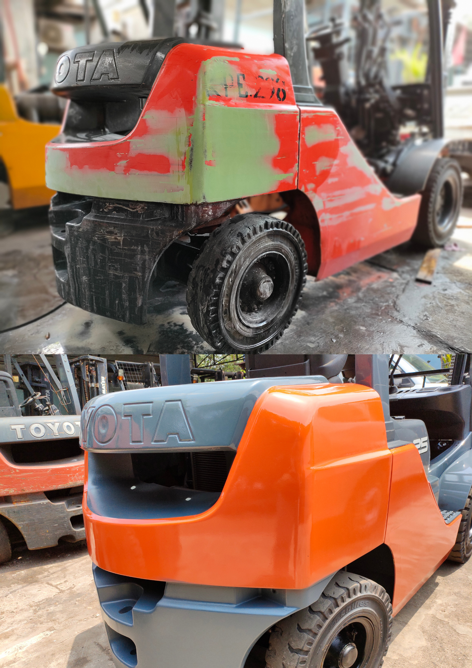 Repainting perlu dilakukan guna menghindarkan forklift dari pengelupasan cat akibat kondisi forklift yang lawas dan usang, serta banyaknya mikro-organisme yang menempel. Penampilan forklift akan terlihat lebih baru setelah dilakukan repainting.